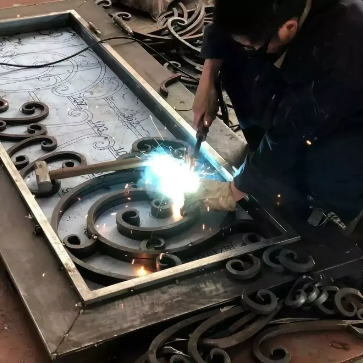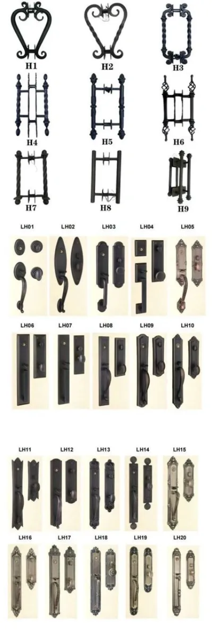 12-Gauge steel Door Frame: 2″x6″ (50x150mm) iron tube Door Panel: 2″x6″ (50x150mm) iron tube Scroll Work: 9/16″x9/16″(14x14mm) or 5/8″x5/8″(16x16mm) solid bar